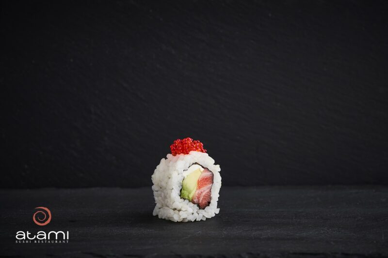 Laks, avocado, agurk, flødeost, tobiko, japansk yuzu dressing, (8 stk)