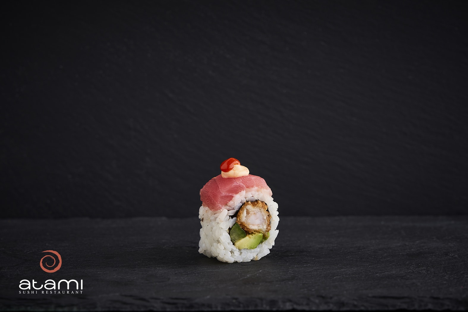 Tempura reje, Avocado, Agurk, Toppet med tun, spicy mayo og chili sauce (8 stk.)